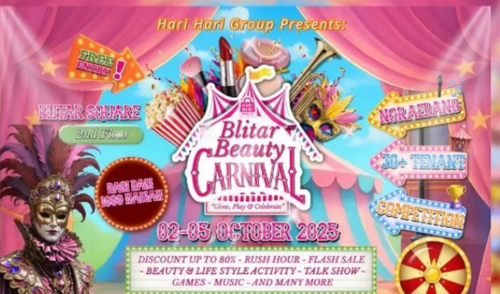 Minke.id – Ajang tahunan Blitar Beauty Carnival (BBC) 2025 resmi digelar pada 2–5 Oktober di Blitar Square. Event yang digagas oleh Hari-hari Store ini menghadirkan lebih dari 50 tenant, mulai dari UMKM lokal hingga brand kecantikan nasional ternama.